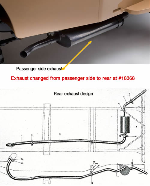 strong>2. Exhaust changed: The first VEC was reportedly built with the muffler under the driver’s seat. The muffler was switched to the passenger side from #10002 – #18638. After that, the exhaust was routed to the rear of the jeep, with the muffler located under the rear cargo area.