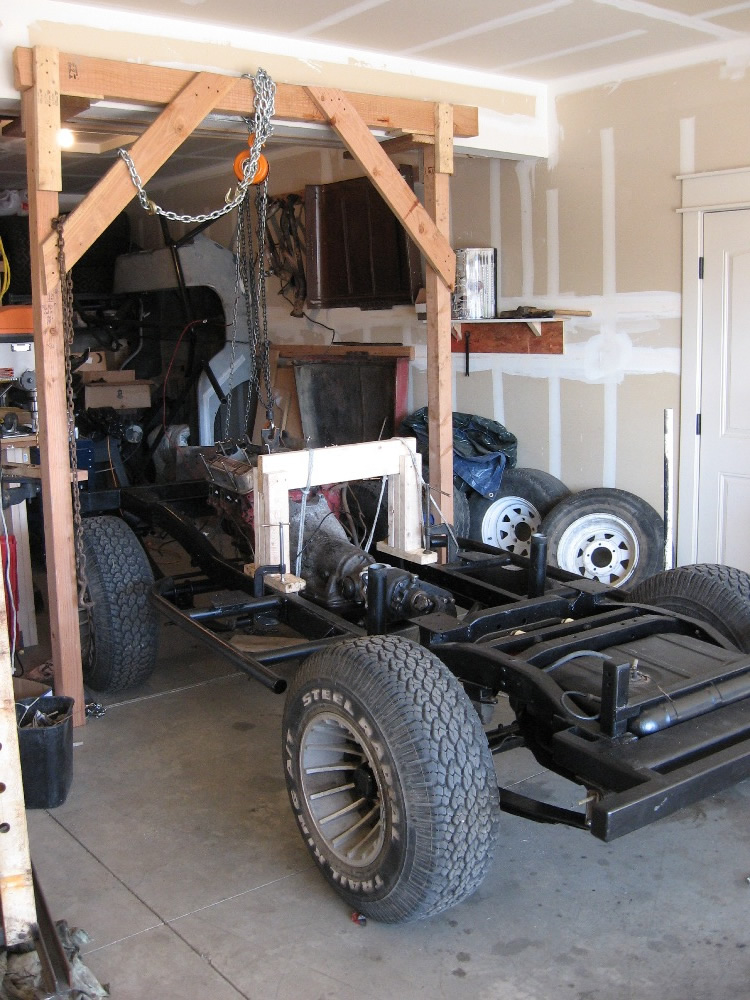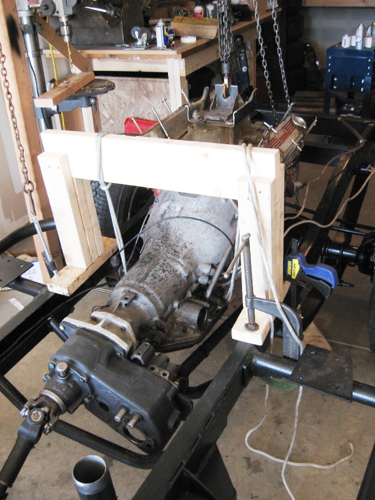 The tricky part of putting the engine, transmission and TC into position was making sure the TC was in the right location. If I got it back into the right place, I would not have to change the lengths of the drivelines. Fortunately, I had plenty of room for the engine, so I had lots of flexibility upfront.