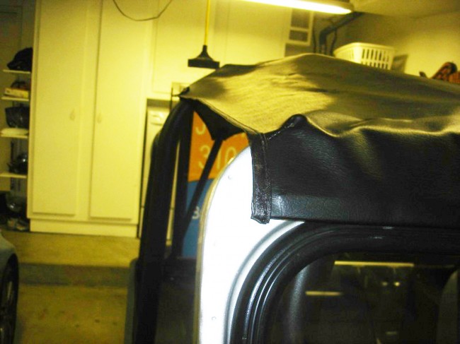 Quinn asked if I knew of any 3 lever boots for a tc & overdrive. I said I didn’t, so he approached his local upolster to have him build something. If you have the same problem, it’s a good solution. He also had his guy tuck the corners of a CJ-5 bikini top to fit nicely. Good ideas and thanks for sharing! You can see more pics of Quinn’s Jeep here.