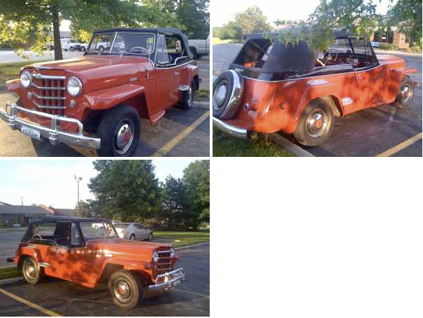 “1950 Jeepster, 84K miles, original drivetrain (4 cyl F-head, 3 speed) Body off restoration. In my family 40 years. Correct red/black paint. New top, side curtains, carpet. Looks very sharp, runs like a top”