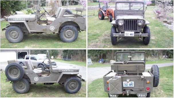 Here’s what looks like a M-38 (it’s even printed on the front bumper), which means the seller’s year of 1944 is off for some reason. Though, it appears to be missing the passenger side tool indents. This will require a closer look.