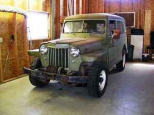 “Stock / 6 volt / flat head strait 6 engine / PTO winch / 16″ tires / body and glass in rough shape / need trailer to haul away”