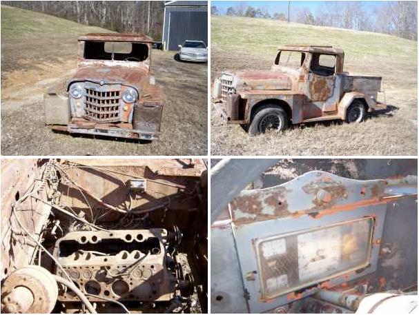 “1940 WILLIS JEEP OVERLANDER, GOOD HEAVY METAL BODY; MIGHT WORK GOOD ON LATE MODEL RUNNING GEAR. 3 SPEED ON COLUMN TRANSMISSIOM MAY BE GOOD. APPEARS TO BE FLAT HEAD FORD ENGINE WITH INTAKE AND HEADS MISSING. RADIATOR IS MISSING. IF YOU LIKE THIS PROJECT OR PARTS VEHICLE CALL 770-403-1432 do not text”