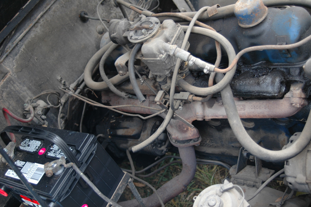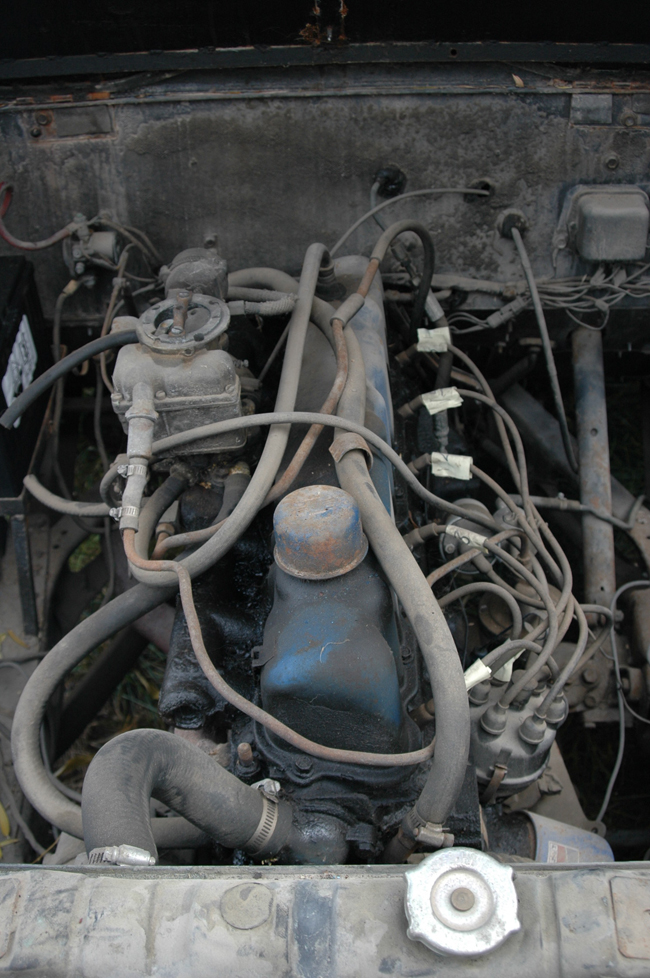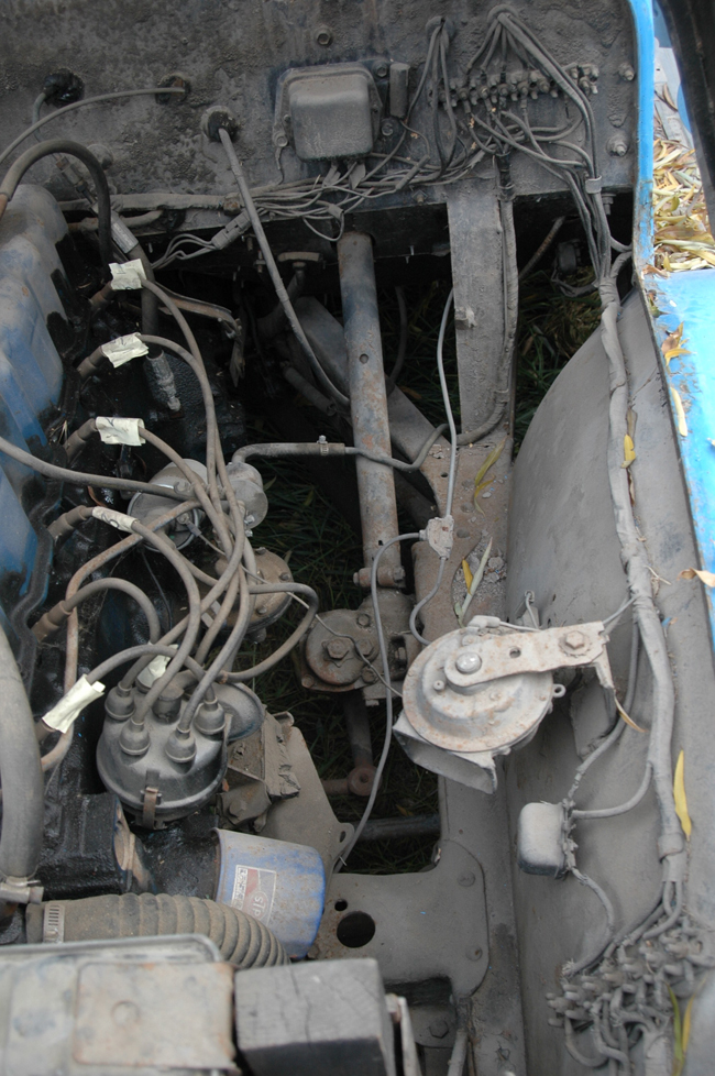 There’s going to be an effort this weekend to get this thing running and see if it will move under it’s own power. The trans linkage needs some work. One funny thing about the engine swap is that the motor is way too tall, leaving no room for an air cleaner. Good thing nobody cut a hole in the hood. The only area of concern we’ve seen so far is the rear differential swap. The spring perches on the front of the springs do not sit on the frame very well, looks like they have maybe 1/2 an inch of frame contact and the welds look like they were done by a 9 year old. The back hangers are not much better.