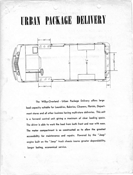 2) One group was produced during post WWII and pre 1950, which appears to include the Willys Van owned by Mike. The brochure provided by Glenn also appears to be related to this second group.