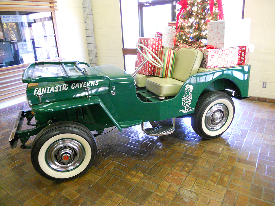 Upon learning about the jeep at the Fantastic Cavern’s Visitor Center in Springfield, Missouri, Bill had to see it for himself. Fortunately for us, he took along his camera. Since Friday is the official start of the Christmas season, even though ‘Black Friday’ has now leaked into the evening of ‘Turkey, Christmas presents in the back of jeep just seemed a perfect way to launch the season (for us Willys nuts anyway).