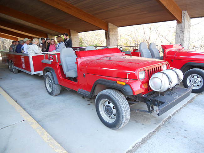 I drove many tours, and thousands of people through Fantastic Caverns in those “new(er)” Jeeps. Propane does a good job of fueling the jeeps for this venture. The 4 Wheel drive “sticks” were cut off because the Tour Guides kept knocking them out of gear when getting in and out of the jeeps. The Automatic Transmission is also a good change, as few of the tour guides can drive standard transmissions.. when I first started in 1993 (I have been gone for a few years now), we had one standard transmission jeep still in rotation, and one of the older automatic transmission jeeps (with drum brakes) still in rotation. As you can imagine, driving any vehicle through a cave can be a challenge, especially when there are other jeeps in the cave doing the same thing (during busy season, tours go in every 15 minutes, that equates to a lot of traffic in a cave with a 1 mile looping tour)…. those who didn’t feel comfortable driving a standard transmission gave a less than comfortable ride to the guests… that was something that management took to heart… I was also the first year of the newer style trams (Longer, better seating and almost all aluminum). The Automatic Transmission, with the cut 4 wheel drive “stick”, and the longer trams led to more comfortable tours, and the ability of the guests to get a real feel for the cave. If you ever have the opportunity to go inside the cave, I would encourage you to do so… there is a ton of really cool natural history, and plenty of local history in the cave to make it worth the cost.. if only just once. If you have 5 people or less in your group, ask to sit in the jeep. Even though we don’t admit it, you get a better more personal tour if you are with the guide and you can ask questions in between stops. Just my 2 Cents!