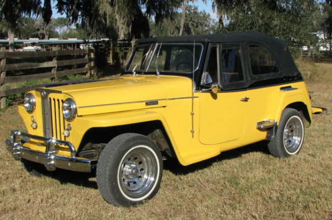 “This Classic Willys Jeepster is 100 Percent original sheetmetal!. California rustfree Convertible Full Restored with never any rust. Fresh Valve job, Weber carburetor, 12 volt conversion and new wiring, New Tires, NEW Top!,New Side curtains!, All new interior and new Chrome! CD stereo system discreetly installed, 3 Speed transmission on the Column with rebuilt Overdrive system!,. Two folders of restoration receipts and paperwork provided with Phaeton Classic Roadster Convertable! Under the hood is the original “Go Devil” 4 cylinder engine that sounds great and has great reponsive power for freeway speeds or a liesurely cruise with the top down! Everthing under the Hood is tight and Right! This Jeepster will drive you all day long at 70 MPH with the wind in your hair and a smile on your face! One of the Nicest Original Jeepsters in the country and truely one of the most fun drives I have ever had the pleasure to own and drive ! Always garaged and pampered by previuos fussy owner.