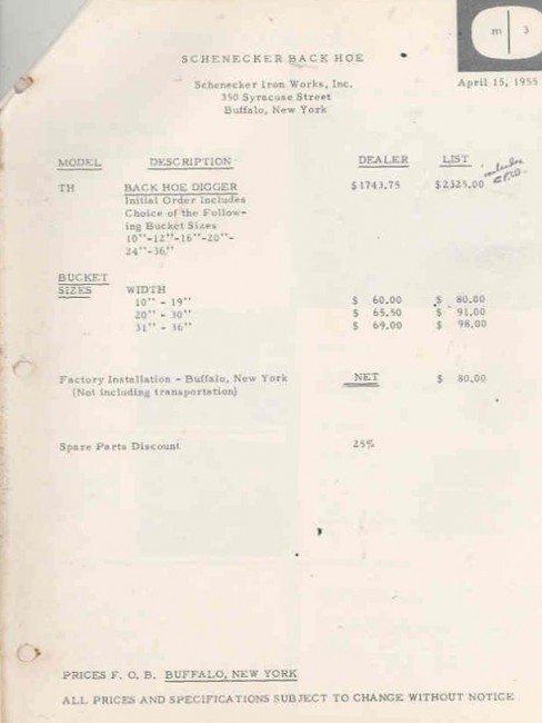 He writes, “A local friend is working on a ’55 Willys Pickup with a Schnecker Iron Works BackHoe mounted on back. It looks just like the one in the Willys Special Equipment Catalog. We have been playing with this unit for several years and have never seen another.