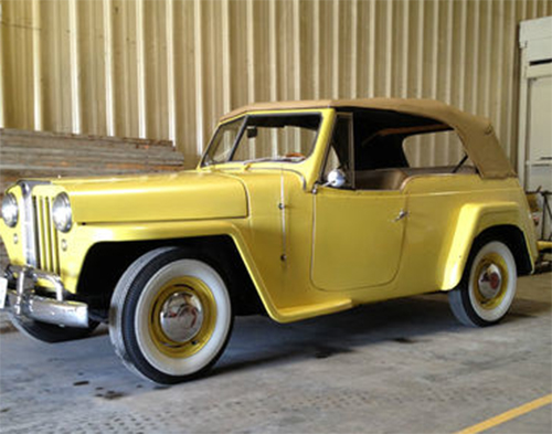 “Up for auction is a 1948 Willy’s Jeepster. This vehicle has been 99% restored and is in great condition. This car has the original four-cylinder, Flat head, 62 horsepower, Go-Devil engine that has been removed and fully rebuilt with only 5500 miles on the rebuild. It has a three speed manual transmission and it comes with overdrive as well that just needs to be hooked up. Many extra parts are included with the car. The interior has been done with new upholstery and carpet, and the paint is fresh with only a few minor issues below the spare tire cover. The steering wheel was replaced by the previous owner but steering wheels are available for this car through Kaiser-Willys and other online Jeep websites. New turn signals and more that is too much to list. The body is straight, and all the trim is available and will be sent with your purchase – it just needs to be installed. Spare tire cover comes with the car and has been painted to match the body color. As seen in the pictures one weekend would completely finish this car. It’s a great around town car that runs smooth and starts right up. The convertible top is in great condition and the windows are all there. The car has been completely gone through and has had a recent tune-up and brakes, steering, clutch and axles worked on. This car was bought to finish restoring quickly but I don’t have the time to drive it much less finish the minor restoration to bring it to completion. It has been kept in a warehouse, not in the weather and is in good condition.”