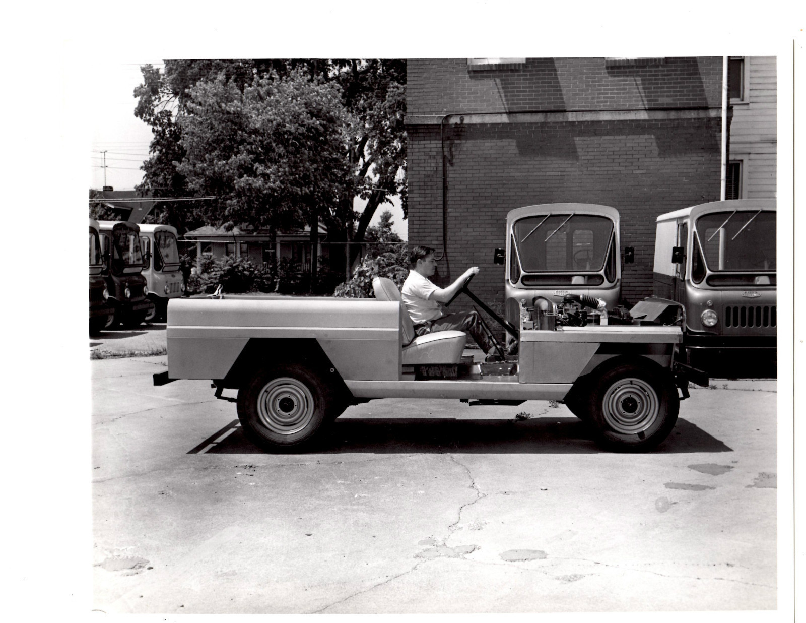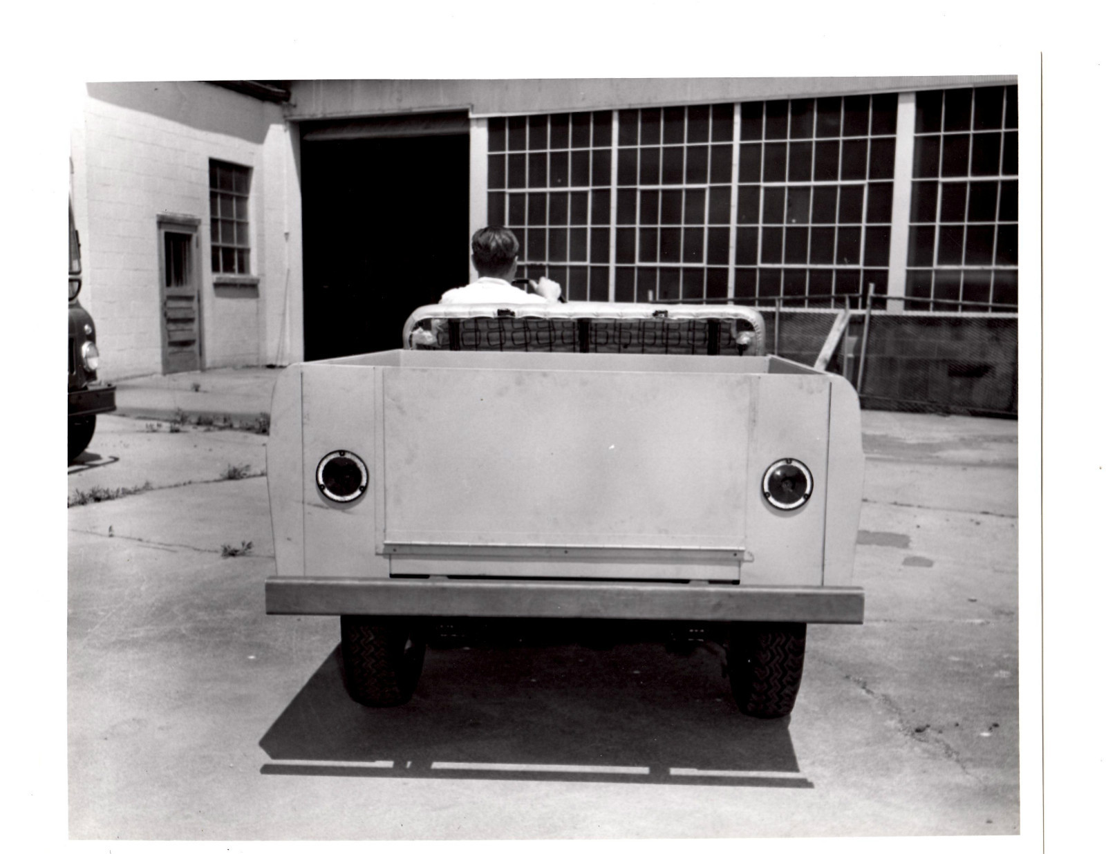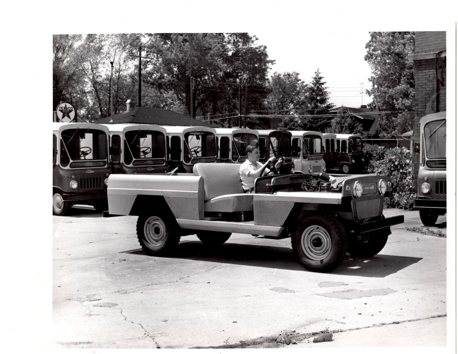 These are prototypes that came out of a study that began shortly before or after the introduction of the Wagoneer and Gladiator trucks. Kaiser Jeep wanted to jump into the export markets and was considering a CKD (Complete Knock Down) concept were complete rolling chassis would be sent to satellite “mini-factories” in other countries. It was called the “Export Low Investment Program.” Kaiser Jeep designed simple bodies that could be produced locally with minimal tooling. In a product planing booklet, they proposed vehicles based on a J200 Gladiator chassis and on CJ-5 and CJ-6 chassis. Several visual concepts were proposed that look similar to these, the main difference being the front end. There are images of a running J200 prototype but only artist’s renderings of the CJ-5 version. These appear to be based on a CJ-6. The J200 prototype utilized the Gladiator grill. These pics were taken in whatever facility was being used to produce the Fleetvan, a number of which are in the background ins some of these shots. It’s likely the prototype work was being done in the same facility.