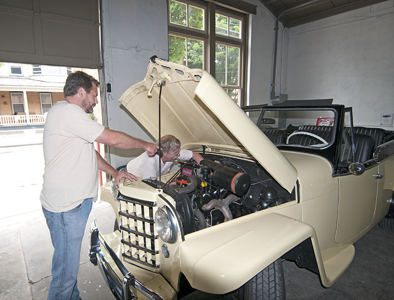 We had a blast on the drive. Sure, it was short, lasting less than a block, but we made the most of it before the Jeepster started acting up again. So, Bill pulled over and Henry and Bill went to work on the engine (issue with the points). As you can see, I’m enjoying the ride even if we aren’t moving anywhere. Besides, if there is one thing I’ve learned as a cook, that is too many cooks spoil the broth.
