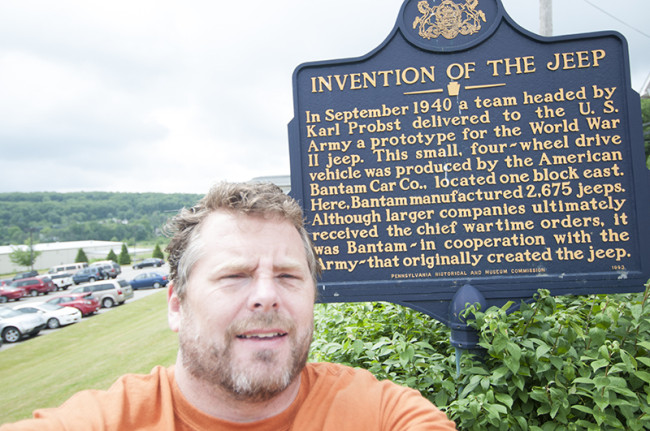 After breakfast, Ann came down with a migraine, so I took her back to the motel room to rest. Meanwhile, I took care of a personal task: locate and photograph the Bantam Factory Marker, one of those holy jeep grail items I can now tick off my list. The marker is at 662 Hansen Ave, Butler, PA and you can see the sign using Google’s street view.
