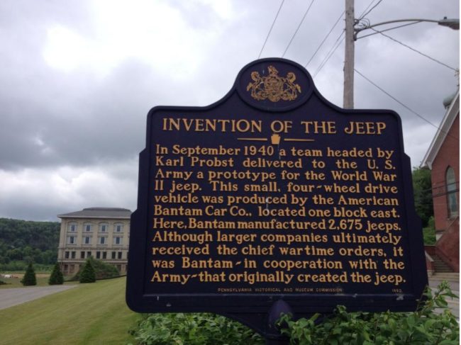 After breakfast, Ann came down with a migraine, so I took her back to the motel room to rest. Meanwhile, I took care of a personal task: locate and photograph the Bantam Factory Marker, one of those holy jeep grail items I can now tick off my list. The marker is at 662 Hansen Ave, Butler, PA and you can see the sign using Google’s street view.