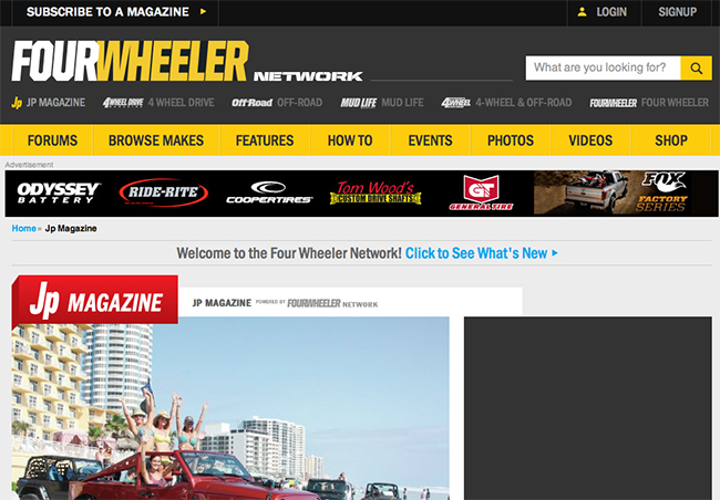 “The JP Magazine website has moved, and we’d also like to welcome you to what we feel is the ultimate site for off-road content on the Web — the Four Wheeler Network.