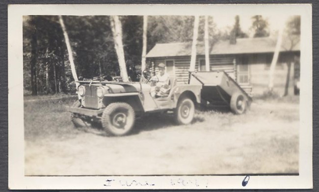 “Original Vintage Snapshot Photo Young Man w/ RARE CJ2A Prototype Jeep & Trailer dated 1947”