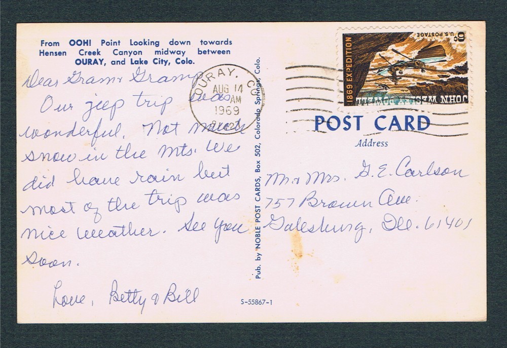 mailed in 1969 from Ouray to Galesburg, Illinois.