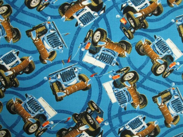 Ann’s been in a quilting mood lately. And, when she gets in a mood, she gets productive. She’s sewn together around 10 quilts of different types in the past couple of months. Recently, she started looking for flat fender fabric (who could that quilt be for?), however all she has found is “Tugger” patterns.