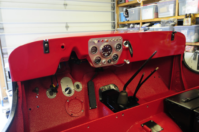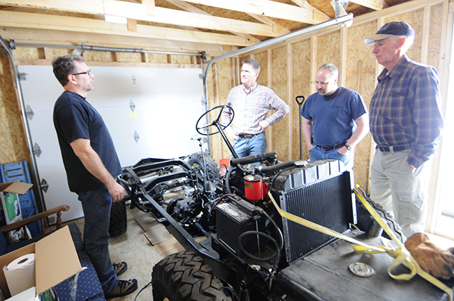 From Dave’s house we all ran over to see Dean’s progress on his CJ-3A. As you can see in the photo, his chassis is already for his body. He told me he had the engine running, but has run into a vacuum problem of some kind.