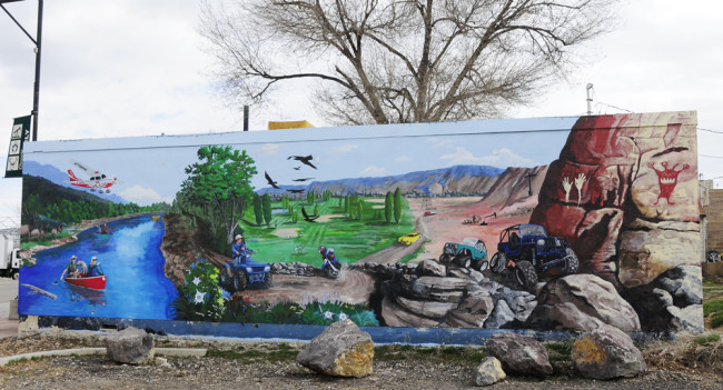 Traveling south from Dinosaur, we eventually entered Rangely, Colorado. This seemed like a vibrant small town out in the middle of nowhere. We saw a few jeeps and this cool mural painted on a wall.