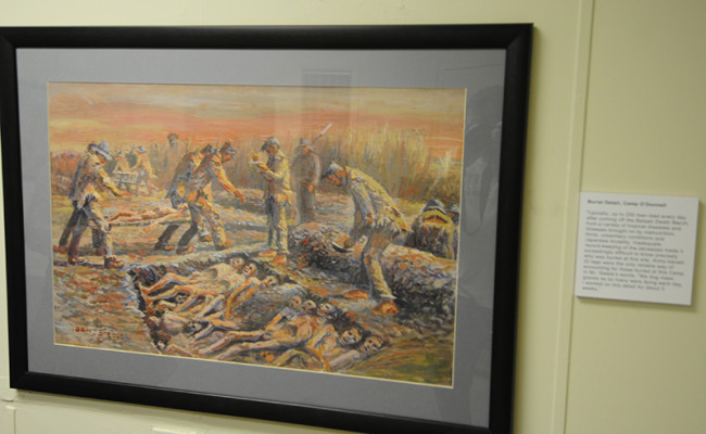 Another small, but powerful exhibit was a series of paintings done by Benjamin Charles Steele, who survived the Bataan Death March and Japanese prison camp. He drew sketches while a POW, but they were destroyed. So, after the war, he got a degree in art and recreated the paintings. The paintings coupled with concise descriptions tell a powerful story of his (and many others) experience as a POW in the Pacific Theatre.
