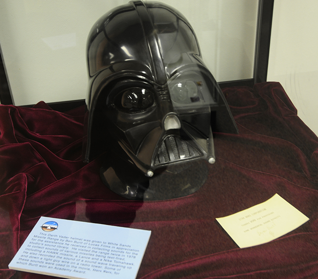 The Museum was a pleasant surprise. Even the price was reasonable (free). The museum is divided into two interior sections and an exterior missile park. We started with the main interior portion. One of the first exhibits we encountered was an original Darth Vader mask. Apparently, the guy who won the Oscar for the Star Wars’ (for you young folks I am referring to Star Wars Episode IV) sound effects obtained a variety of sounds from the missile range, so he managed to get the Darth Vader mask donated to the museum. Nice bit of trivia!