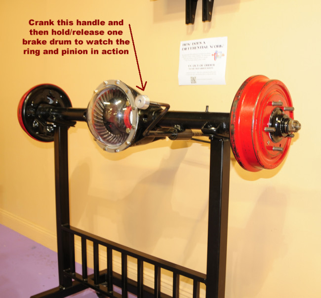 The demonstration of how/why a ring and pinion developed was particularly well done. There was a video (see below the picture of the R&P machine) of the R&P and played above a hands-on example that people could spin by hand. Well done!