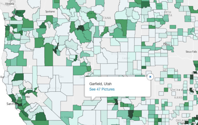 One of the neater features shows all the photos mapped by county across the United States. Click here to see it: http://photogrammar.yale.edu/map/