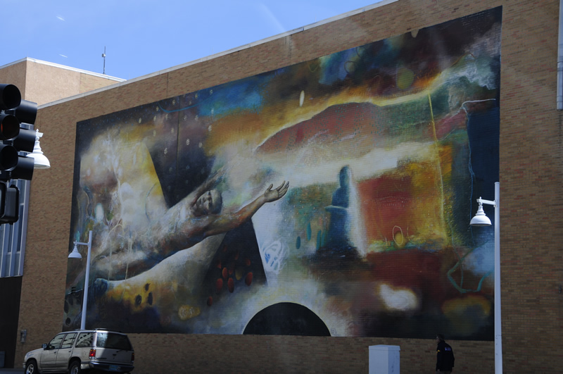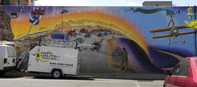 Next on our list of things was to cruise Route 66 from old town to the Nuclear museum. We followed the historic road through downtown Albuquerque and past the University of New Mexico. There were some wonderful (and a few odd) murals along the way. A few odd pedestrians made the drive all that more colorful.
