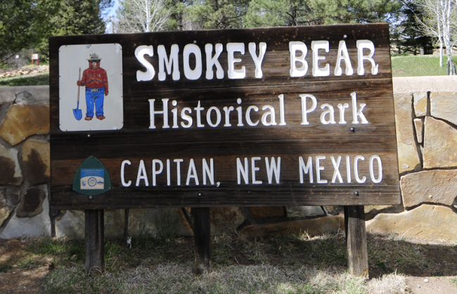 From White Oaks we took a dirt road that wound out of cell phone range through some remote forests and ranches. It was a fun drive. We circled north before heading south to the town of Capitan, home to the real life Smokey Bear (note, not Smokey the Bear — these folks are sensitive about that — there is no “the” in Smokey Bear!).