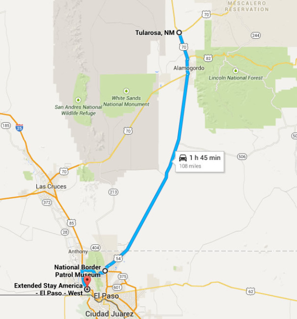 Roy: I wouldn’t want to be training and breathing all that white sand (gypsum dust). You know that stuff goes into the atmosphere and lands on cars. Apparently it eats the paint. We were told that auto dealers offer a special coating to counter it. … I *think* you’d find El Paso a little less rougher these days? Even driving through downtown we found it clean with a good vibe. However, they do have a problem with vehicles disappearing . . . I can’t imagine where they disappear to . . .