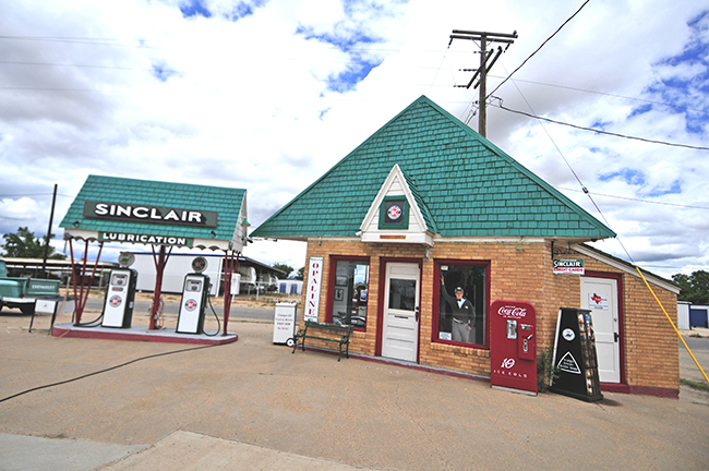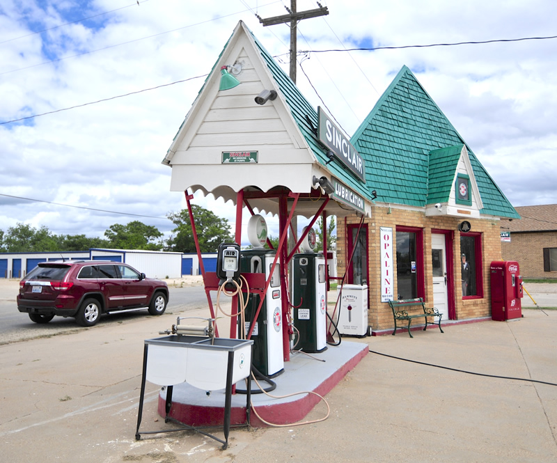 After the Petroleum museum, we drove to the small town of Snyder. There we found a triangle shaped Sinclair gas station dating back at least to the 1950s, if not earlier. Little is known about the history of the gas station online. However, while we were taking pictures a woman came by and told us some history. She’d first used the station in the 1950s. Over the years owners came and went, but the station was always kept in good shape. The current owner has restored it and gathered old gas station memorabilia and put it inside and outside the station. The woman sharing her story was very pleased to tell us that the station had never been vandalized. There are things outside the station that could easily be taken, but for some reason no one has.