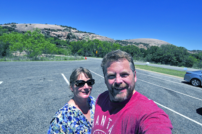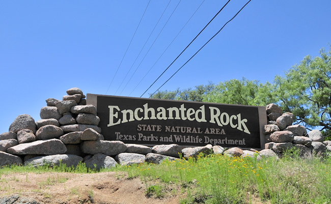 After spending a little time exploring the city of Llano and it’s town square, we drove out to see Enchanted Rock State Park. The Texas Hill Country is a beautiful series of rolling hills and meandering roads. This time of year (or maybe they were grown just for us??) perennial rainbows of violet, red, orange and yellow flowers (I know that isn’t the full spectrum of ROYGBIV, but I’m a writer, not a physicist, dammit), filled the road sides making the drive exceptionally beautiful.