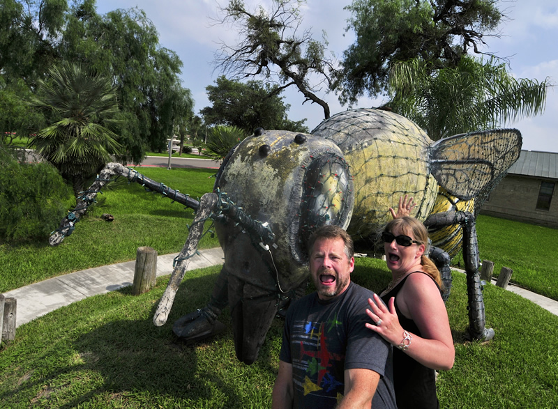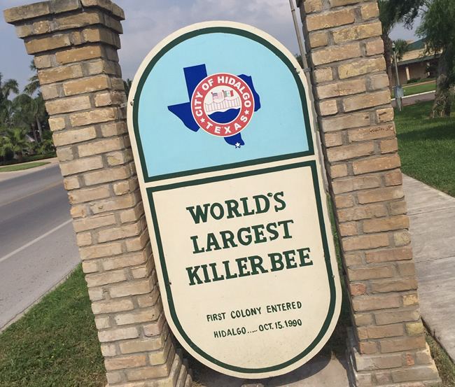 When we reached McAllen, we headed south toward the small town of Hidalgo. The town’s claim to fame is that it has the largest killer bee and the first US location for ‘killer’ bees from Mexico.