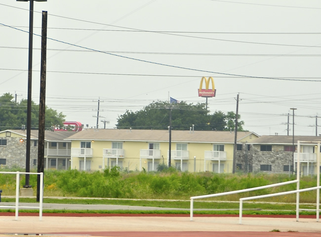 At one point we were stopped at the entry gate waiting for a couple cars that had just passed the border patrol inspections to pass in front of us. Mexico literally dumps into downtown Laredo. That was the most interesting thing we could find about the city. None of our usual tricks worked to locate a neat thing to record or photograph. At that realization, we decided to leave.