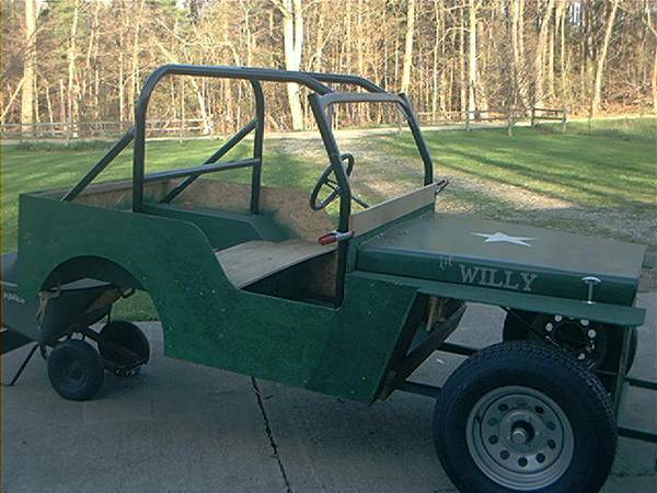 “CHECK OUT one of a kind LiL WILLYS jeep. POOR LiL fella is desperately seeking a rear end. Without one of those,( LiL WILLY won’t go..) His LiL rear is hoping to be no wider than- 55″or 56″ and lug pattern 5×4.5″ LIL Willy wants to thank You for helping with this project”