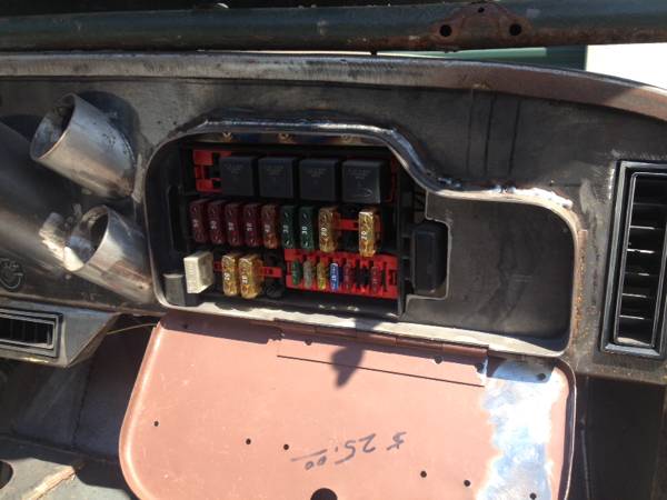 It has a Dana 44 rear axle with new Summers Brothers full floating hubs in the rear but needs differential to be complete. Front axle and steering is just a dummy Dana 30 for mock up. Corvette master cylinder for brakes. GM tilt steering column installed. Fully custom made steel dash with pods for multiple gauges and wiring harness hidden in the original glovebox.
