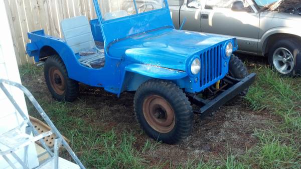 “1946 Jeep Willis – Almost completely restored. The jeep runs and drives like a New one. Heck it should. All it needs now is a few cosmetic improvements. Really hate to sell it but due to unforeseen circumstances I have to. Asking 6500 Obo. Call”
