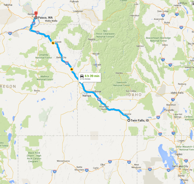 Tomorrow, instead of taking I-84 (the fast route) to Salt Lake, we plan to drive south to Wells on 93, then cut east through Wendover, drive through the Salt flats, then on to Salt Lake City where we’ll dine with my two youngest kids. We’ll be spending the night in the Provo-Orem area. On Friday we’ll be heading back to Nevada and, after hitting the National Park & Ely (pronounced Eee Lee), will head south until we feel like stopping.