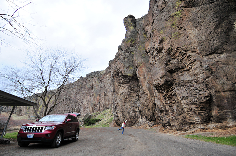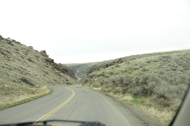 We began the morning just north of Twin Falls (See day one of our trip here), We didn’t make if far before we realized that we, and by we I mean “I”, had forgotten to pack our Gazetteers (like this), those trusty, detailed maps, ones safely tucked away in my office. Sigh. But hey, who need maps when we have the internet … until that disappeared, too. Then we relied on hope!