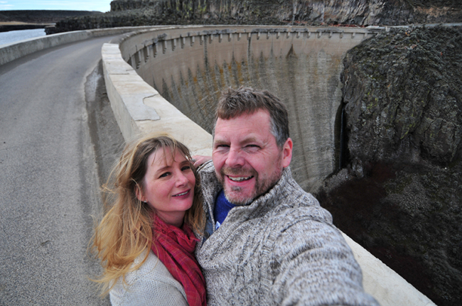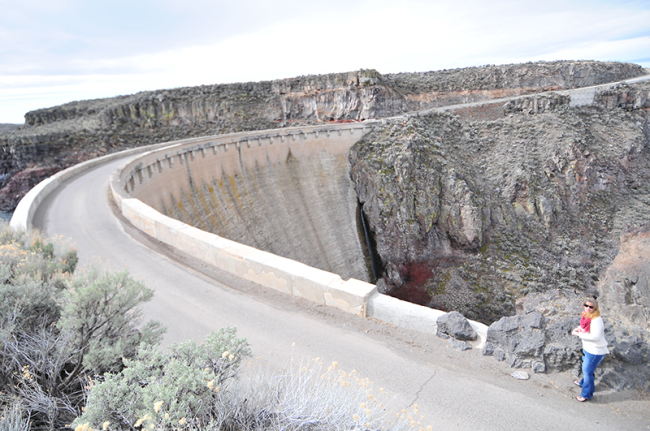 The next thing we encountered was also unexpected, Salmon Falls Creek Dam and Reservoir. The dam provides a one lane bridge to pass across to the other side. The photos really don’t do justice to the crumbled look of it.