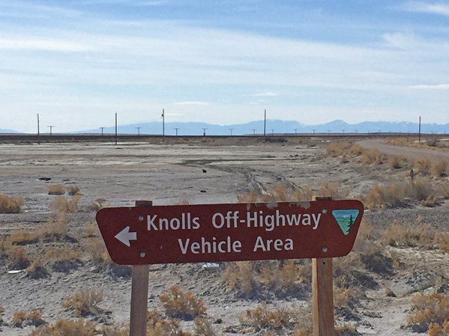 When we reached the other side of the basin, we discovered the Knolls Off Road park. We checked it out, finding places to camp and play in the sand.