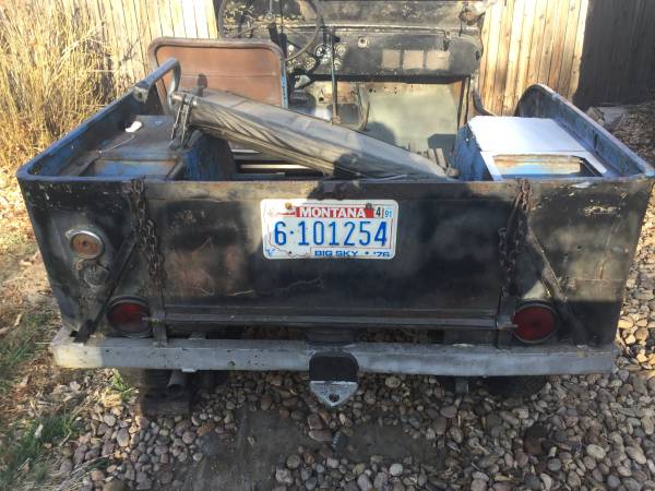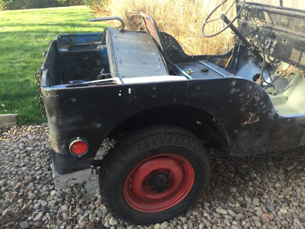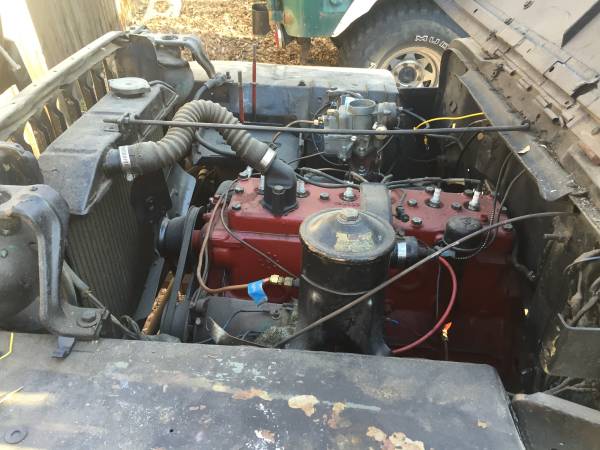 “This is a 1942 Jeep MB project. Powered by a rebuilt 1950 Studebaker Champion “straight 6″. Other upgrades include rebuilt carb., rebuilt steering box, rebuilt master brake cylinder, new brakes and drums, new throw-out bearing and clutch, new gas tank well and gas tank, front floors replaced, and more. It’s a project I just don’t have time to finish.