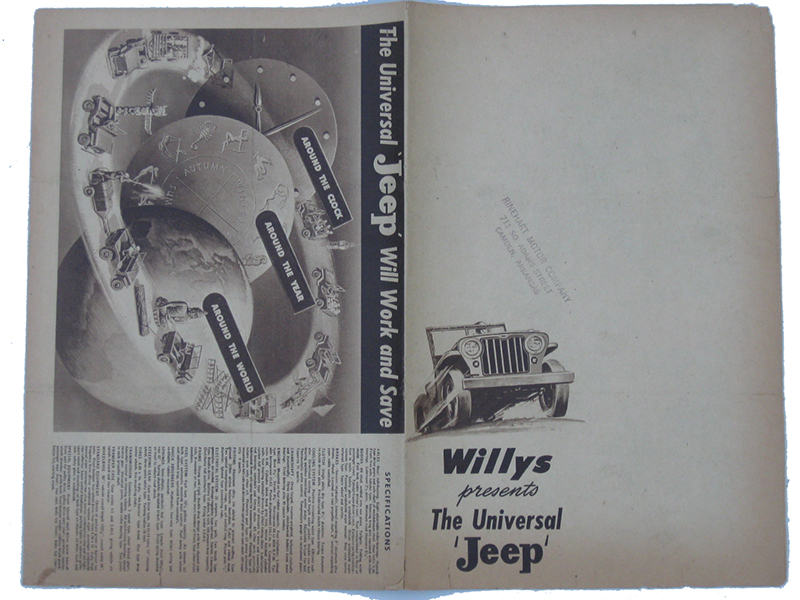 The brochure I’d like to donate to the cause is a really early super rare Willys Jeep Planning Brochure. Its about 25 pages long and includes the very hard to find supplemented newspaper section of 6 pages that is most always missing.