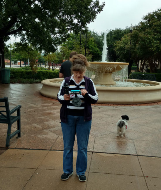 Me, Ann, and Zollie (named for the drug Zoloft). Zollie is her PTSD dog, though he’s so skittish she spends more time calming him than he her. He’s quite smart, but more cat than dog.