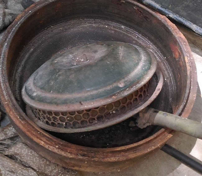 3. Top and screens removed. Inside was original some kind of copper mesh. Circular screens sit inside and outside of the mesh.