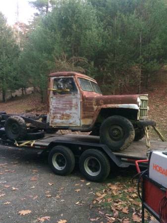 “1957 willys truck for sale. It has al all original drivetrain, 226 super hurricane, t90, d18. Engine runs good. The starter is pulled right now due to a bad bendix gear. If interested I have many more willys parts that could go along with it.”