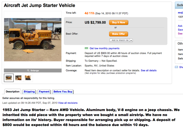 Tom Sterndale has been building a database of existing APUs, a challenging task given how little they’ve been documented. As part of his effort, he hoped to identify these jeeps which were once listed on eBay.