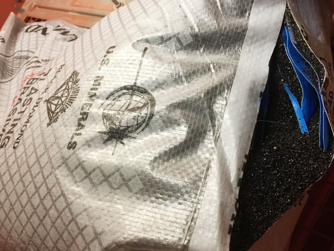 Once the compressor started pumping, I started blasting. After considering various options, I went with fine coal material made by Black Diamond designed for blasting.