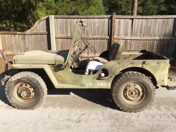 “Willy’s Jeep 1950 M-38 Military Jeep. Working 24 volt system with dual batteries. Under water version with special sealed ignition system. Fresh rebuild on carburetor. Runs and drives with good tires. ”